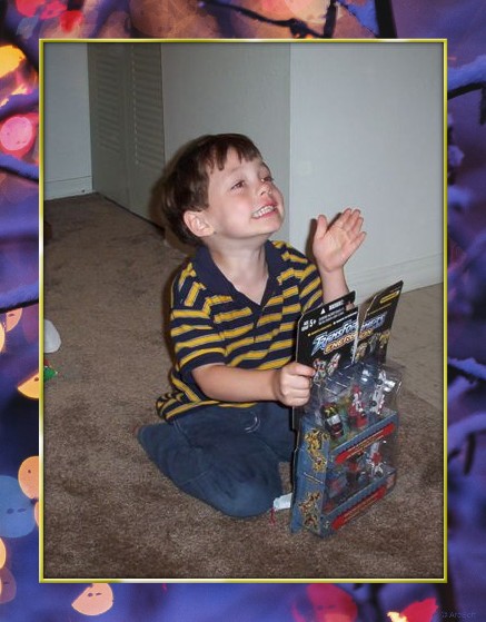 This is one happy child, now he can play in the mud with his new toys. He also received a four wheel drive truck, fire truck and other miscellaneous toys. |