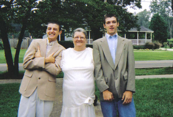 Sons and Aunt in our front yard after church on Sunday morning. Next thing is to get ready to go to the bowling alley. |