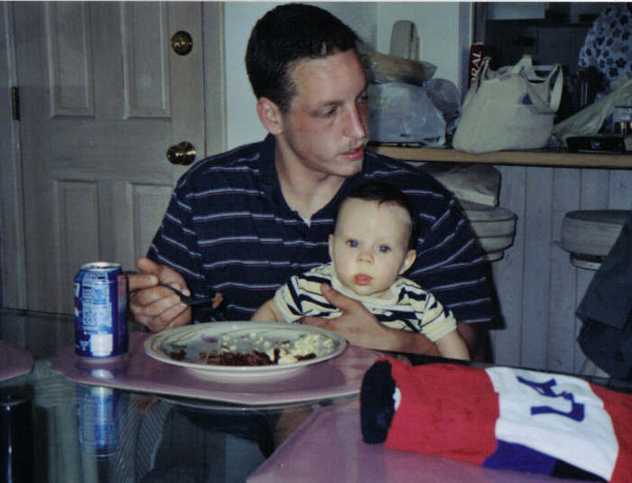Son and grandson on vacation in the Outer Banks of North Carolina. The little one never misses a meal, anyone's meal is his meal. |