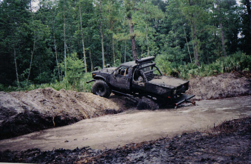 My brother Eddy on his property in Lake Helen, making his first mud hole. Who needs bridges? |